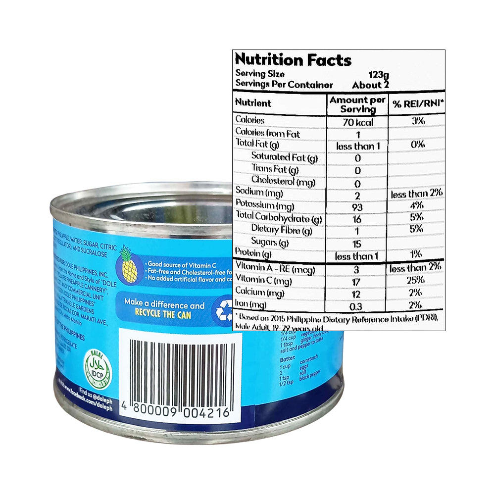 • Sold per 1 can containing 227 grams of Dole Pineapple Chunks.