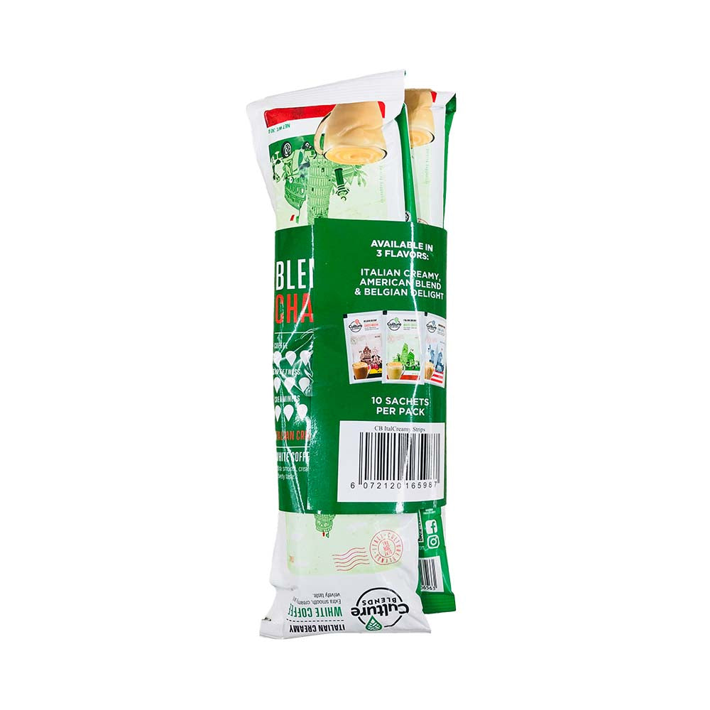 - Sold per tie in 10 sachets (30 grams each) of Culture Blends Italian Creamy Strips White Coffee.