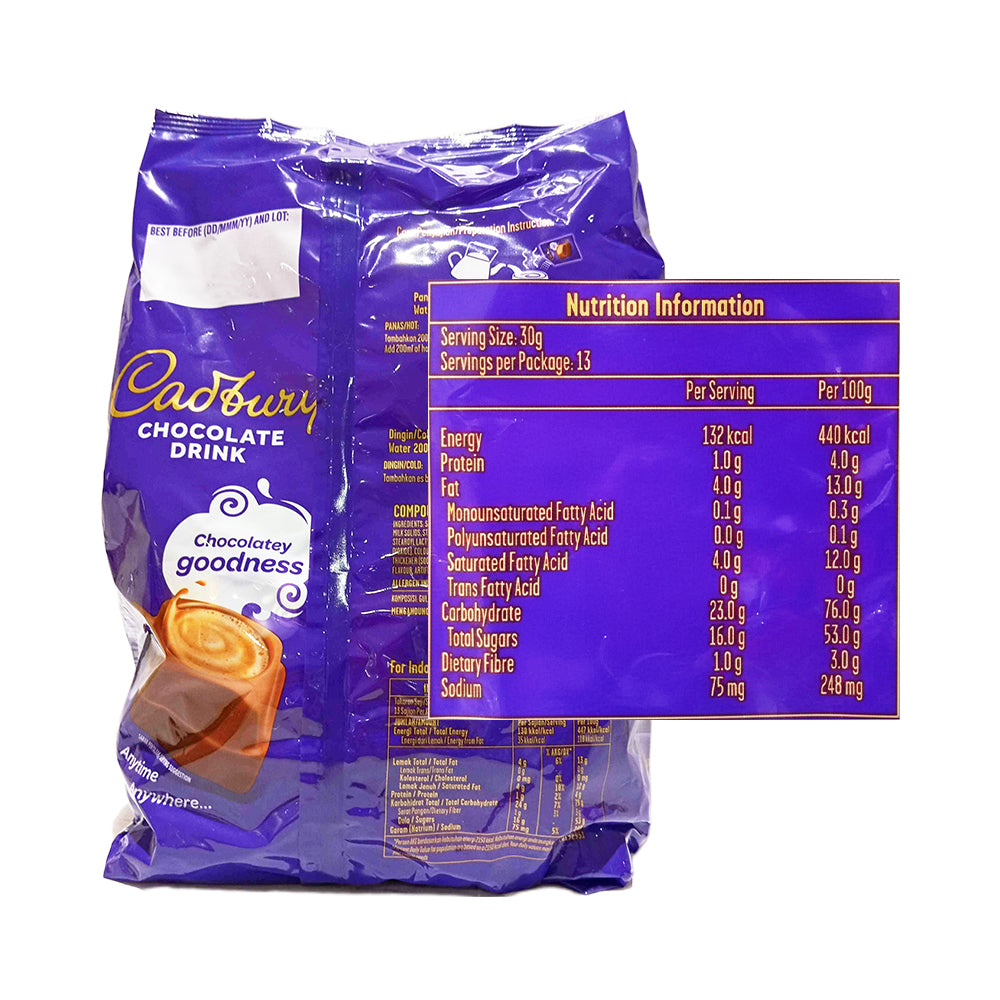 • Sold per pack contains 390 grams of Cadbury 3 in 1 Hot Chocolate Drink.