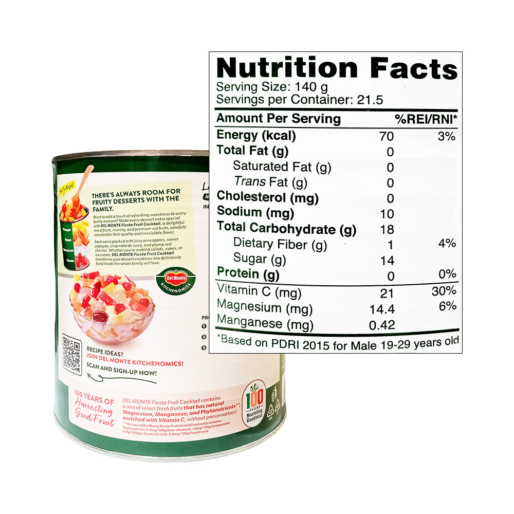 - Sold per 1 can containing 3033 grams of Del Monte Fiesta Fruit Cocktail.