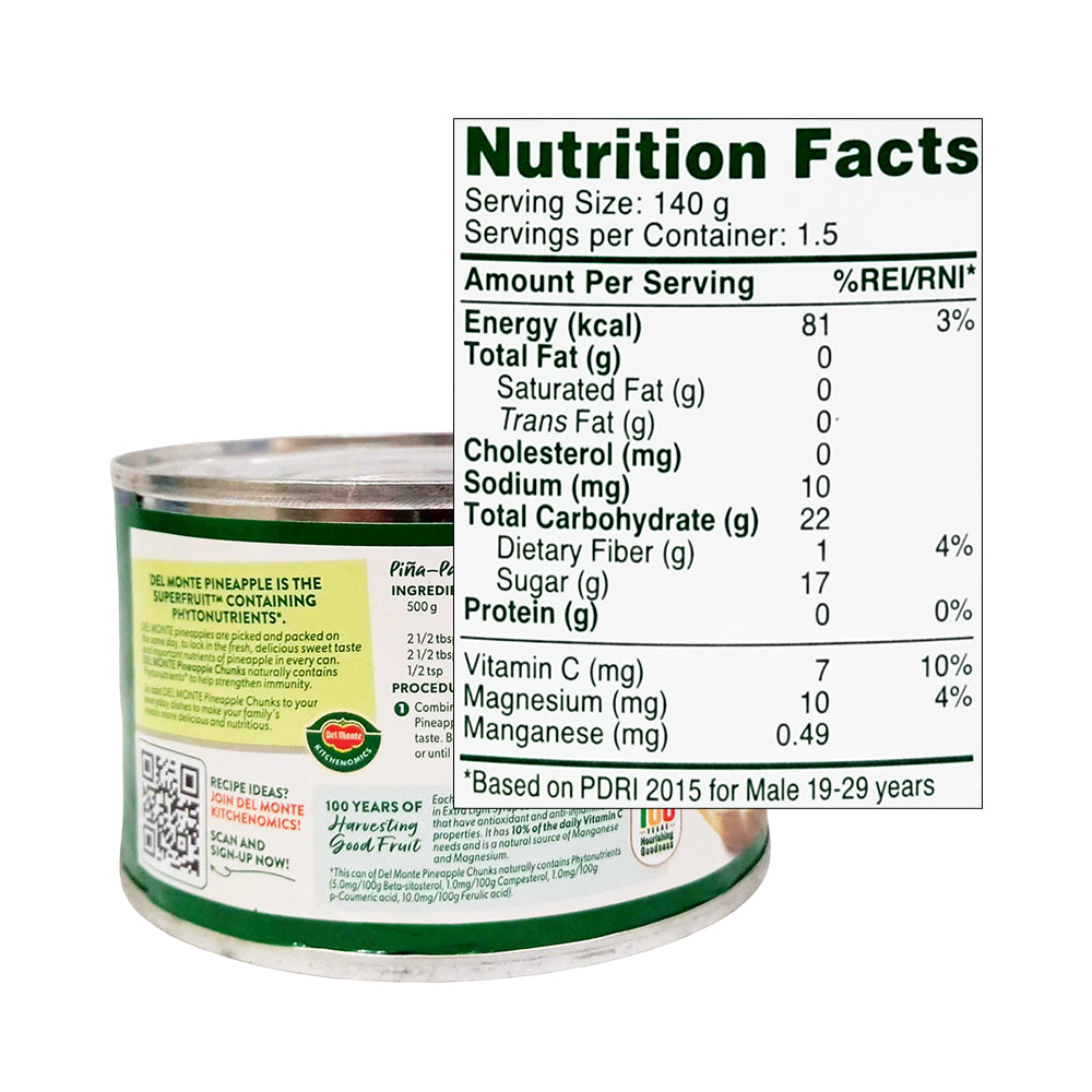 • Sold per 1 can containing 227 grams of Del Monte Pineapple Chunks.