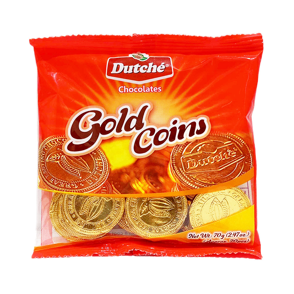 - Get this 1 pack of Dutche Chocolates Gold Coins containing 3.5 grams.