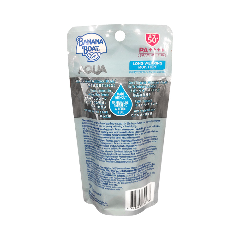 - Banana Boat Aqua Long Wearing Moisture Sunscreen Lotion SPF50+ PA++++ is your ultimate defense against harsh UV rays — with hydration that lasts all day.