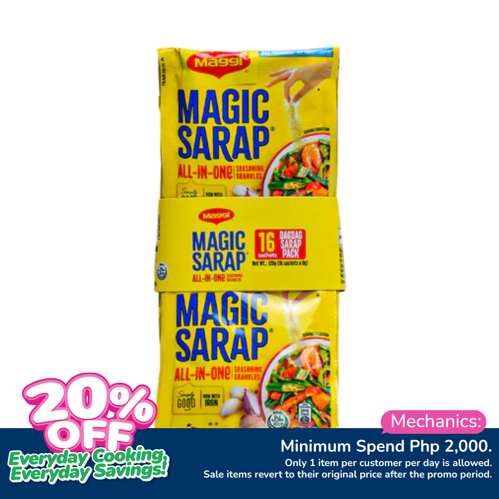 - Get these 16 pieces (8 grams each) of Maggi Magic Sarap Granules Seasonings and save 20% by following the mechanics below.
