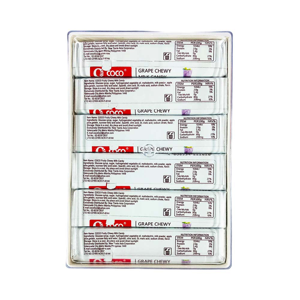 - Buy this 1 box containing 30 pieces (17.5 grams) of Coco Fruity Chewy Milk Candy.