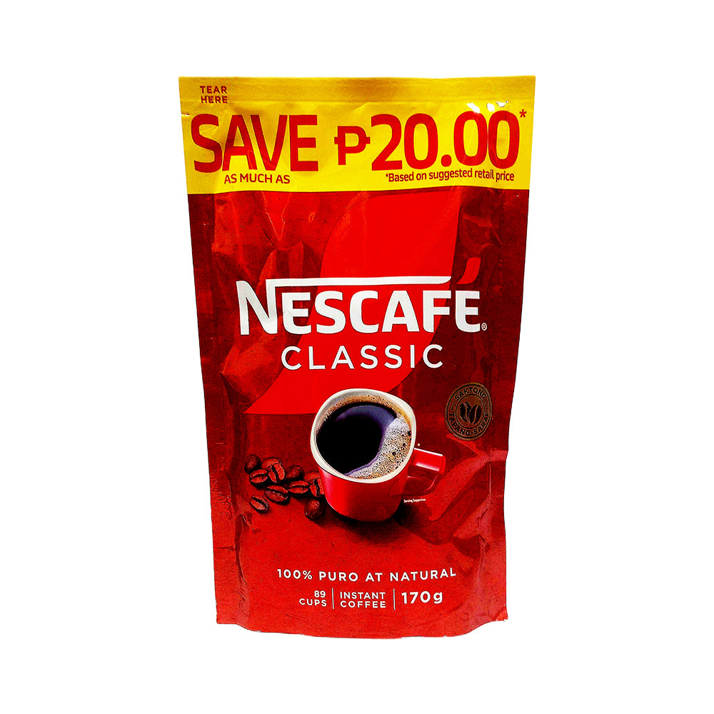 - Get this 1 pouch of Nescafé Classic Stand Up Pouch containing 170g.
