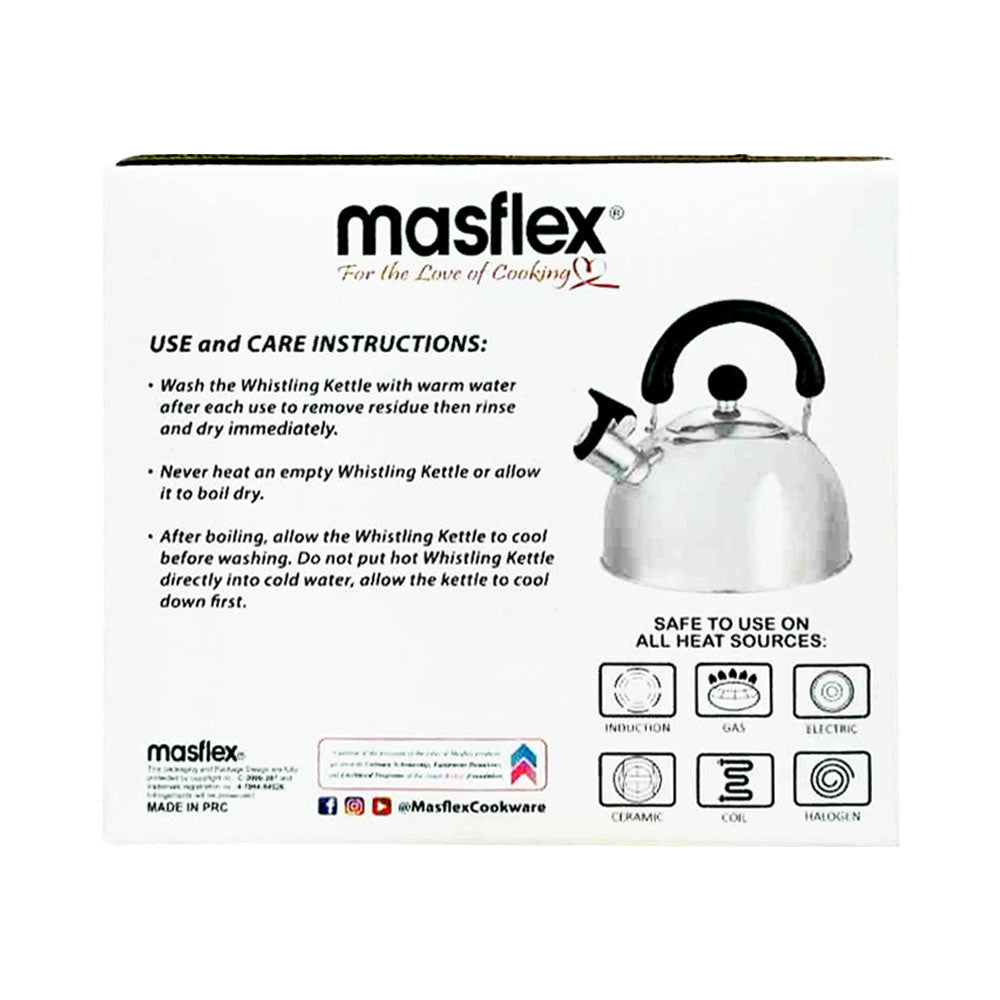 - Experience the perfect blend of style and functionality with the Masflex Stainless Steel Whistling Kettle.