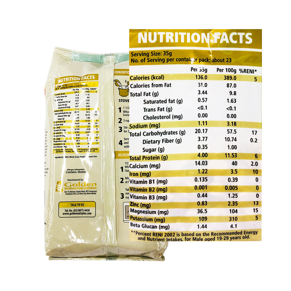 - Sold per pack containing 800 grams of Golden Quick Cooking Oats.