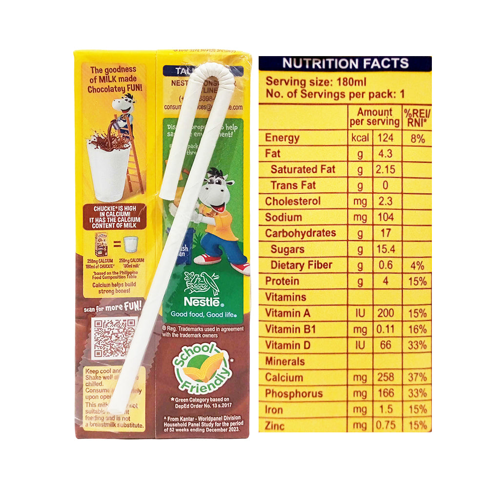 - Sold per 1 piece contains 250ml of Nestle Chuckie Chocolate Milk Drink.