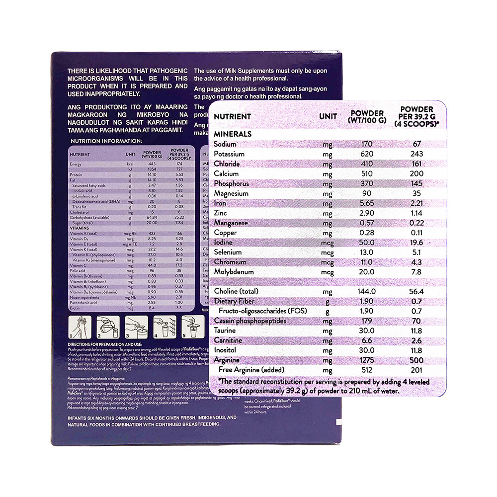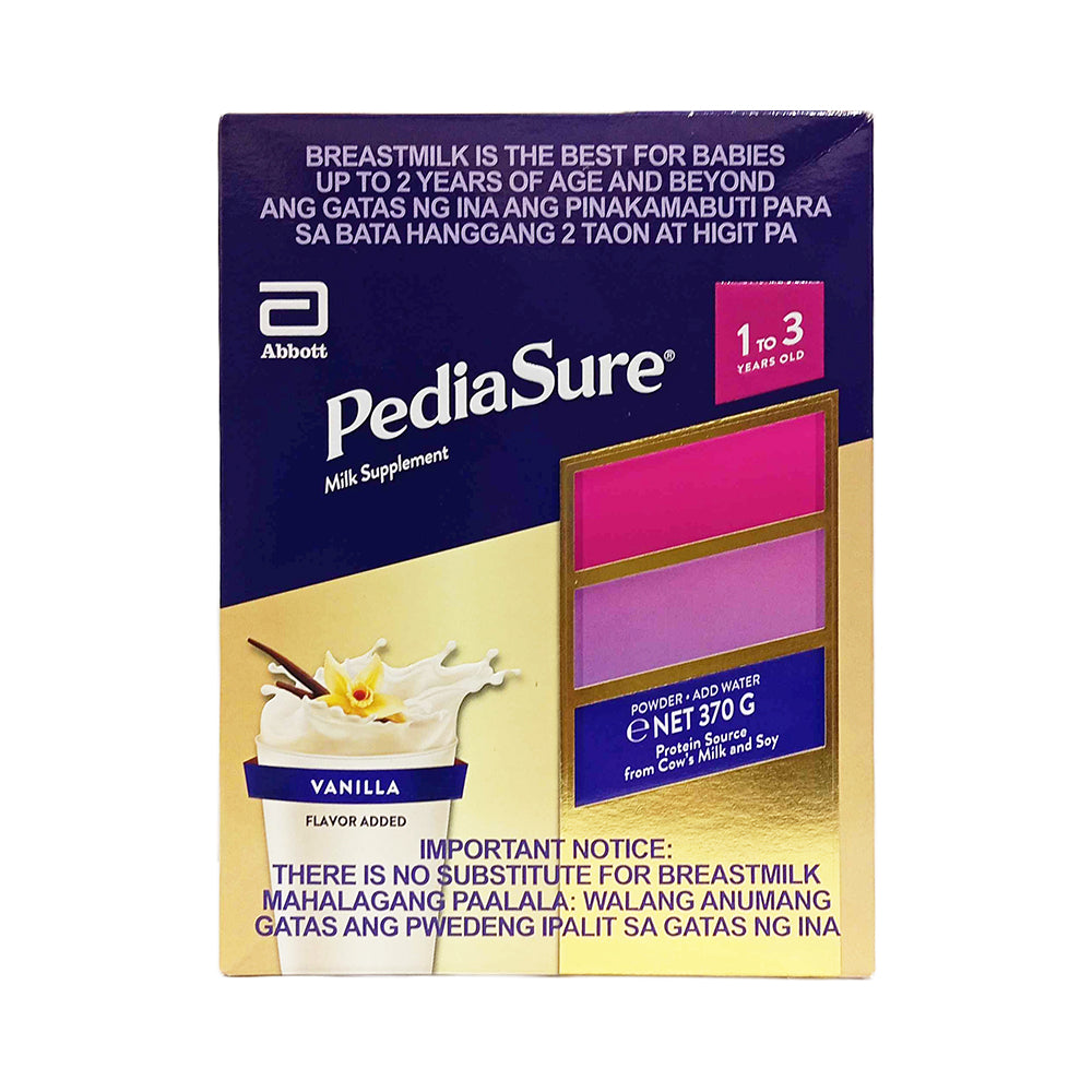 - Get this 1 Box (370 grams) of Pediasure Milk Supplement 1-3 Years Old Vanilla.