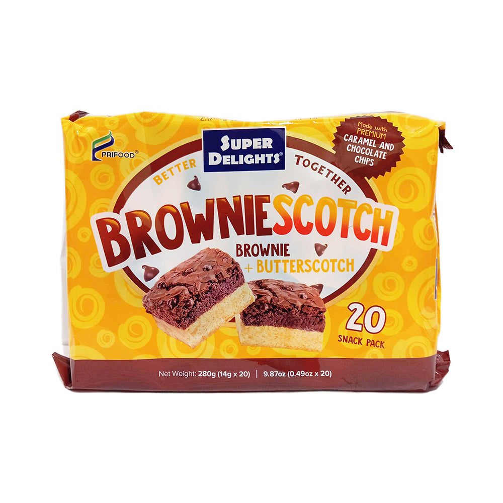 - Get this 1 pack containing 20 pieces (14 grams each) of Super Delights Brownies Butterscotch.