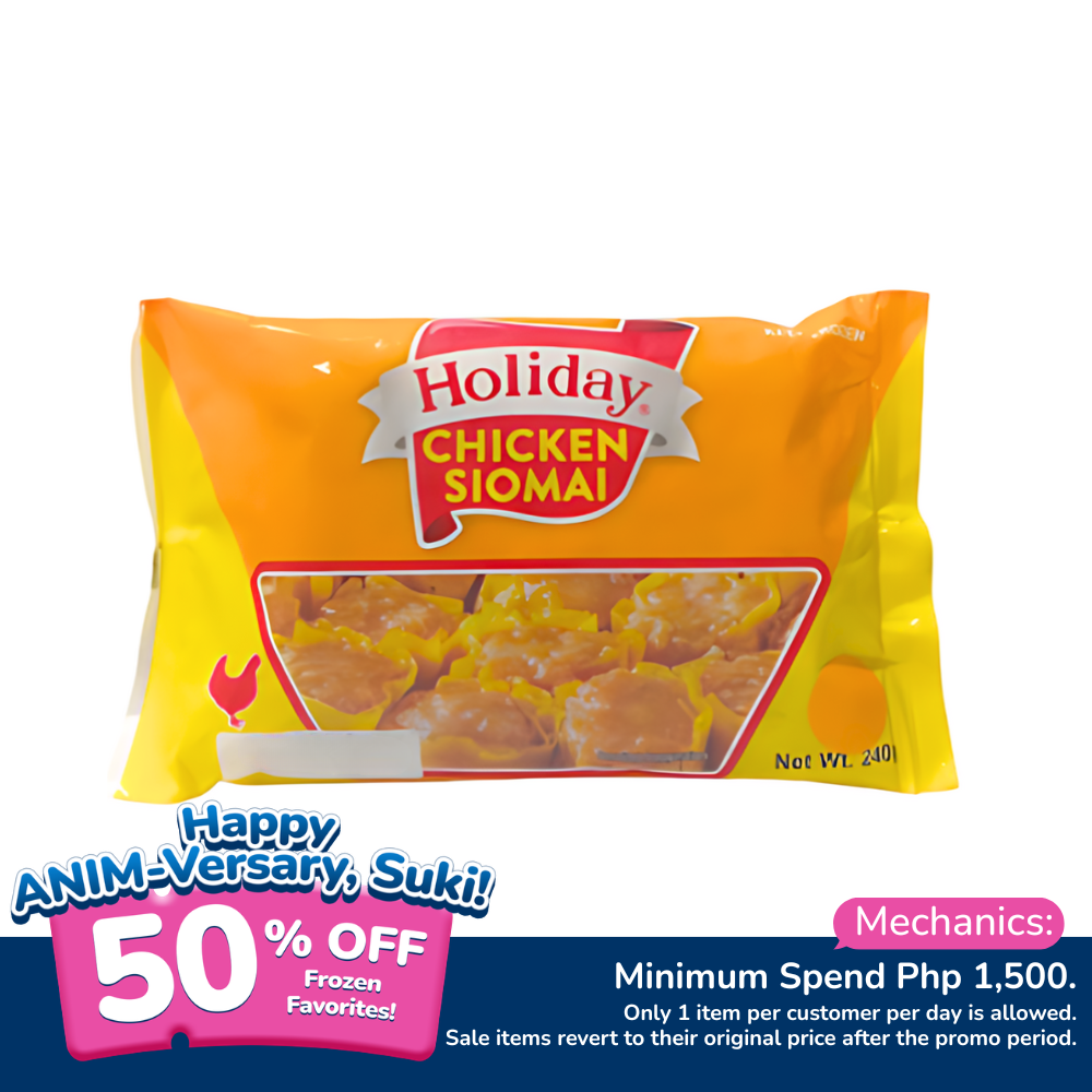 Grab a pack (240 grams) of Holiday Chicken Siomai and save 50% by following the mechanics below.