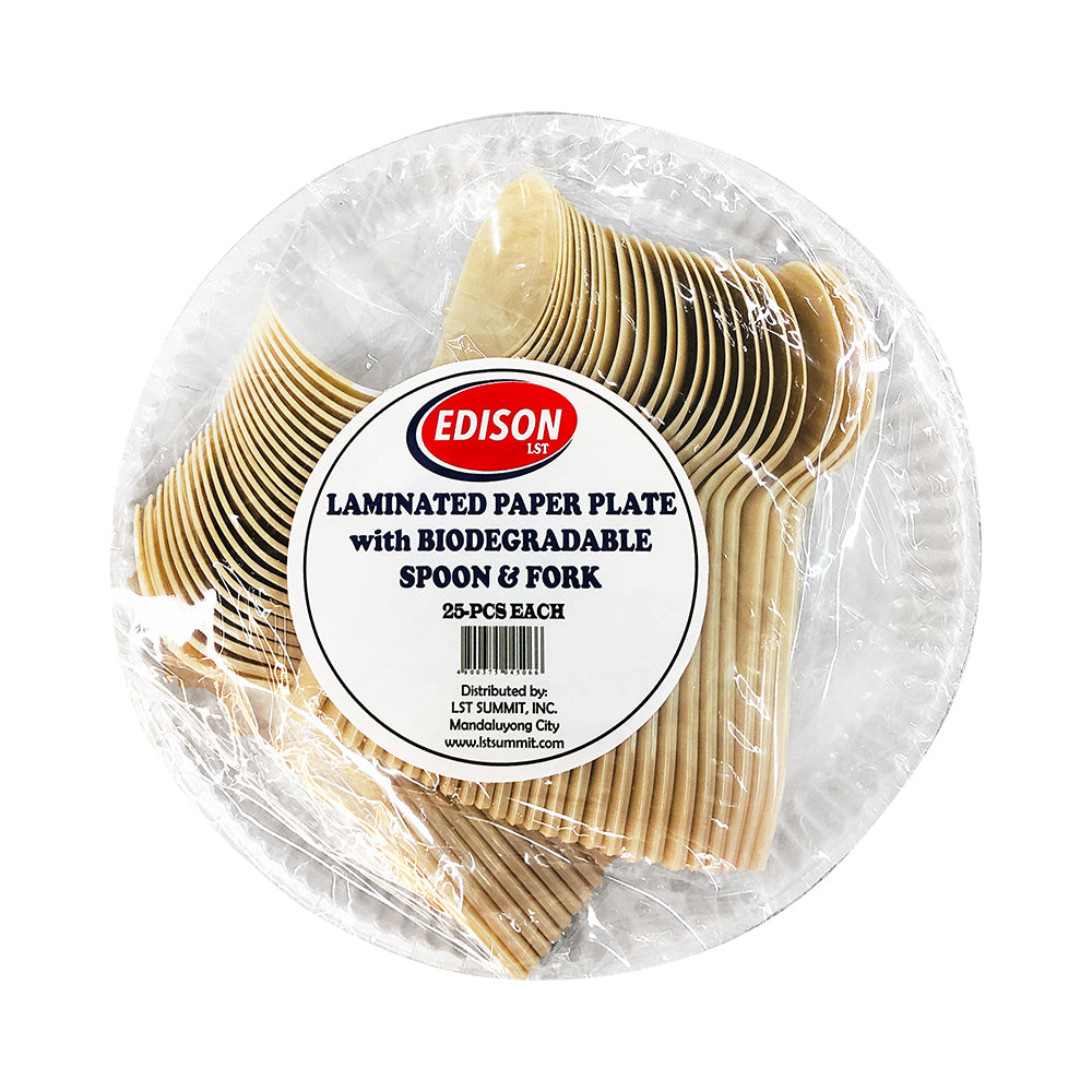 Edison LST Laminated Paper Plate With Spoon And Fork 25's