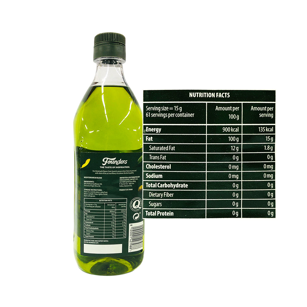 - Get this 1 bottle (1 liter) of Founders Extra Virgin Olive & Sunflower Oil.