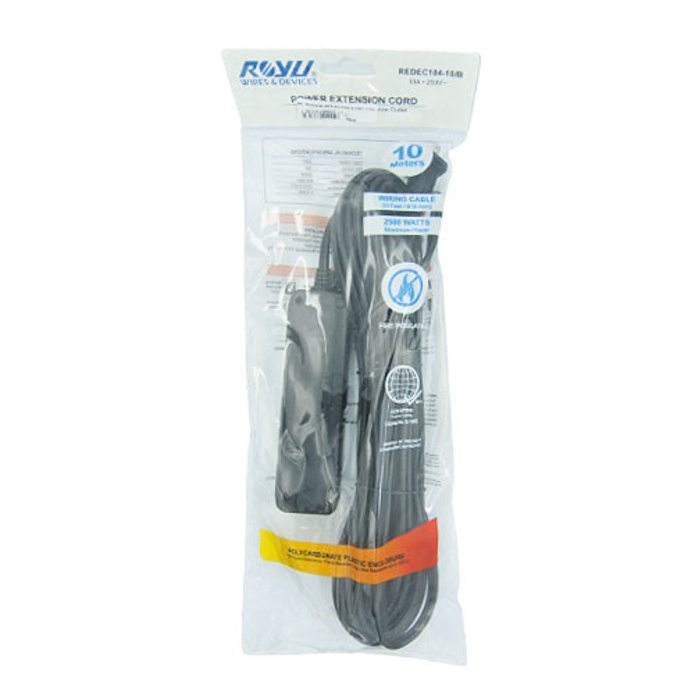- Never worry about not having enough outlets again because Royu 4-Gang Extension Cord Black 10M REDEC104-10/B comes to the rescue.