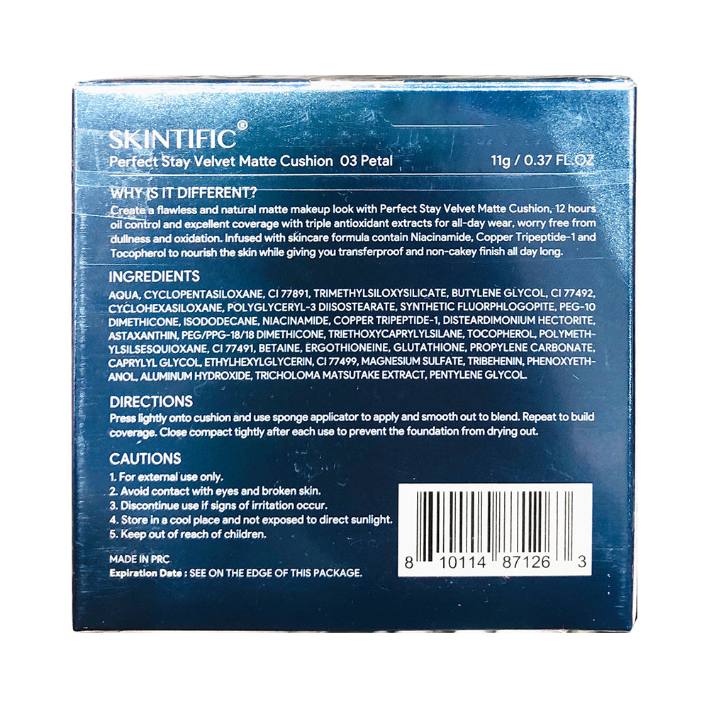- Get 1 piece (11 grams) of Skintific Perfect Stay Velvet Matte Cushion.